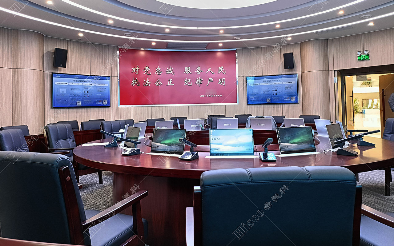 某警官学院Hisco/希视科品牌麒麟系统无纸化、短咪杆数字会议、扩声系统、中控矩阵系统调试完成,效果用户满意