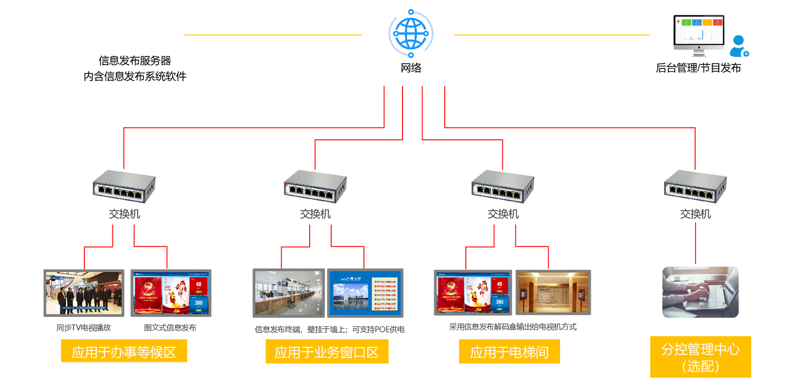 随着信息时代的到来,银行、医院、交通、商场、学校、体育场馆、机场等领域对联网型信息发布需求越来越大,各行各业迫切需要提供实时、集中控制管理和自动播出数字多媒体信息发布系统。